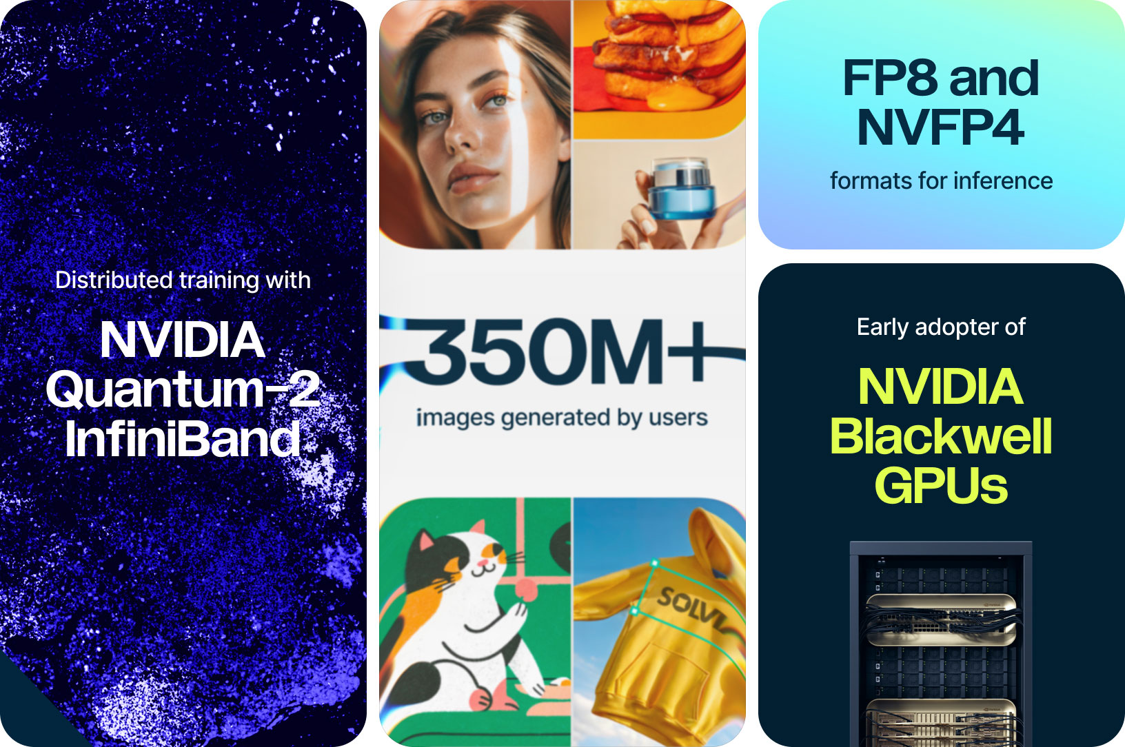 Scaling image generation: Successfully deployed NVIDIA Blackwell GPUs for scaling their model, validating this hardware for large-scale training of image generation models.